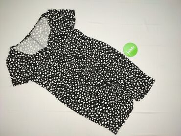 Czarna sukienka mini w biały, kwiatowy wzór - Fason: dopasowana w talii dzięki gumkowaniu, rozkloszowany dół - Długość: mini - Rękaw: długi, z delikatnym marszczeniem przy mankiecie - Dekolt: V z ...