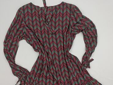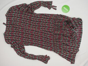 Sukienka damska S/M z geometrycznym printem - Rozmiar z metki: S/M - Fason: dopasowany z marszczeniem w talii, lekko rozkloszowany dół - Rękaw: 3/4 - Dekolt: okrągły - Długość: przed kolano (mini/...