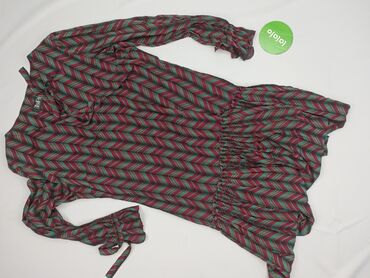 Sukienka GLAMOROUS, rozmiar L - Krój: rozkloszowana mini z elastycznym ściągaczem w talii i wiązanym paskiem - Rękaw: 3/4 - Dekolt: w serek z listwą i guzikami - Wzór: geometryczny, wielokolorowy ...