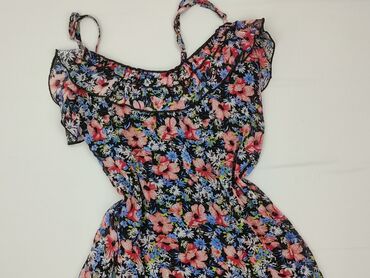 Sukienka damska w kwiaty - Fason: zwiewna, kopertowa/rozkloszowana, z delikatnym odcięciem w talii - Długość: mini do przed kolano (asymetryczny dół z falbaną) - Dekolt: łagodny, okrągły - Rękawki...