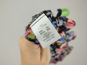 - Wzór: intensywny, kwiatowy print na czarnym tle (odcienie różu, niebieskiego, bieli, zieleni)