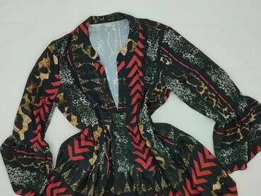 Sukienka mini z kopertowym dekoltem i falbanami – wzór paisley/mandala - Krój: taliowana, z wiązaniem w pasie, dół z podwójną falbaną; kopertowy dekolt z troczkami do zawiązania. - Rękawy: długie,...