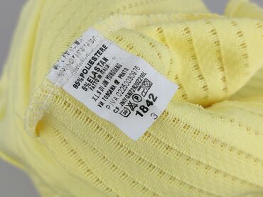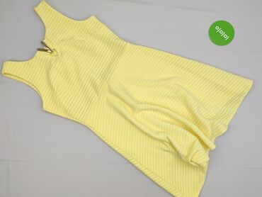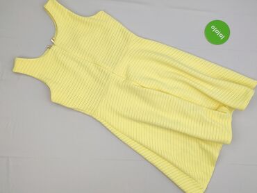 Sukienka bez rękawów w kolorze intensywnej żółci. - Fason: prosta, lekko trapezowa, długość do kolan (ok. midi/mini zależnie od wzrostu), dekolt typu halter z zabudowaną stójką. - Materiał: ażurow...
