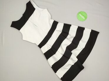 Sukienka damska w stylu „Styled in Italy” - Fason: dopasowana góra z krótkim rękawem, rozkloszowany dół z kontrafałdami - Kolorystyka: czarno-białe, szerokie poziome pasy na spódnicy; górna część g...