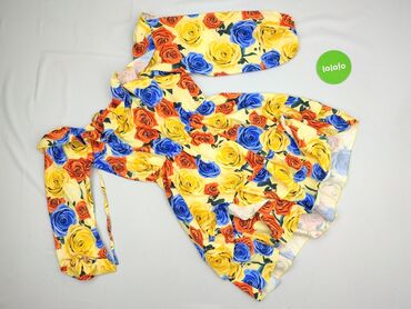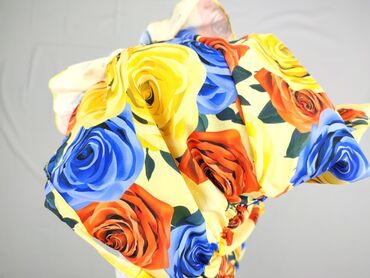 - Wzór: wyraziste róże w kolorach żółtym, niebieskim i pomarańczowym na jasnym tle
