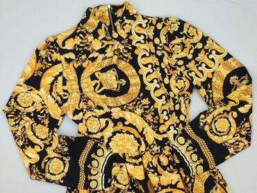 KoktajlowaSukienka damska mini XS – czarno‑złoty barokowy wzór