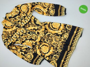 - Wzór: bogaty, złoto‑żółty motyw barokowych rozet i liści na czarnym tle, ozdobne bordiury przy dole i mankietach