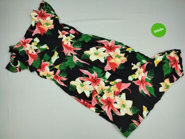 Sukienka damska na ramiączkach z kwiatowym printem - Krój: prosty, lekko zwężany ku dołowi, długość midi/przed kolano (zależnie od wzrostu) - Dekolt: okrągły, ramiączka wąskie - Wzór: gęsty, tropi...
