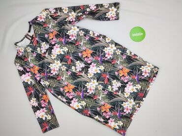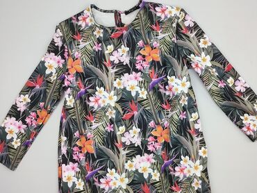 Sukienka damska Mohito Collection, rozmiar S - Fason: dopasowany, ołówkowy - Długość: do kolan - Rękaw: 3/4 - Dekolt: łódka - Wzór: duże kwiaty w odcieniach różu, fioletu, beżu i zieleni na jasnym...