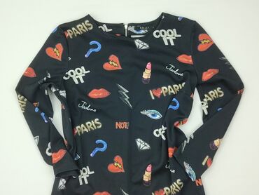 Sukienka MOHITO BASIC, rozmiar L - Fason: prosta, lekko dopasowana, długość mini/przed kolano - Rękaw: długi - Dekolt: okrągły; z tyłu małe rozcięcie na guzik - Wzór: kwiatowy na czarnym tle (odci...