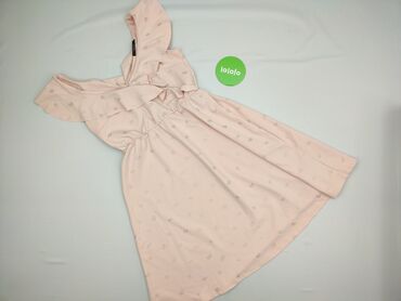 Sukienka damska MOHITO BASIC, rozmiar M. - Kolor: pudrowy róż - Krój: dopasowana góra, od talii rozkloszowany dół - Dekolt: w kształcie serca z delikatnym wycięciem - Rękawy: krótkie z falbanką - ...