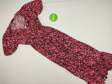 Sukienka damska marki Mohito o wzorze w kwiaty w odcieniach fioletu i różu. Charakteryzuje się dekoltem w kształcie litery V, krótkimi, motylkowymi rękawami oraz elastyczną talią, która podkreśla s...