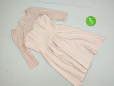 Sukienka damska MOHITO BASIC, rozmiar M. - Kolor: pudrowy róż - Krój: dopasowana góra, od talii rozkloszowany dół - Dekolt: w kształcie serca z delikatnym wycięciem - Rękawy: krótkie z falbanką - ...
