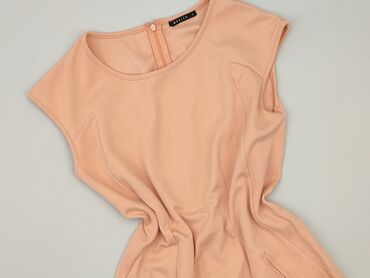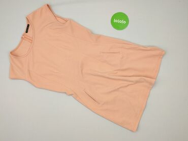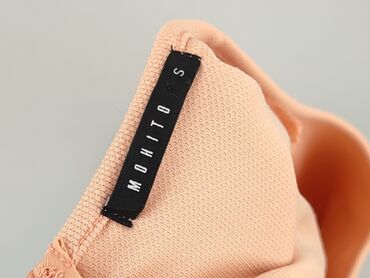 Sukienka damska marki Mohito w kolorze brzoskwiniowym. Charakteryzuje się prostym, ale eleganckim designem, z czarnym wykończeniem dekoltu w kształcie litery V. Sukienka ma krótki rękaw i dopasowan...