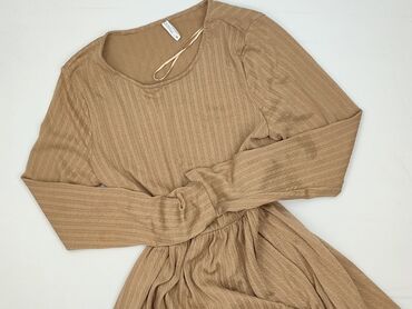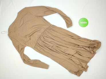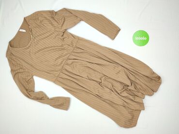 Sukienka damska midi w prążek, beżowa - Fason: dopasowany, długość midi - Rękaw: długi - Dekolt: okrągły z ozdobnym wycięciem i wiązaniem przy szyi - Materiał: elastyczna, miękka dzianina prążkowa...