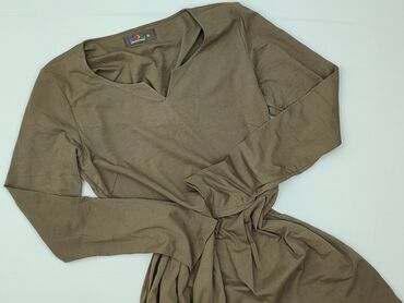 Sukienka damska MOON, rozmiar M - Fason: midi, z długim rękawem - Kołnierz stójka, zapięcie na guziki w górnej części - Talia podkreślona wszytą gumką + pasek do przewiązania - Rękawy zakończone g...