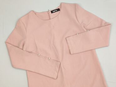 Sukienka MOON, rozmiar S. - Kolor: beżowy. - Fason: prosta, lekko rozszerzana ku dołowi; długość mini/za kolano w zależności od wzrostu. - Rękawy: długie z marszczeniami na ramionach (delikatne buf...