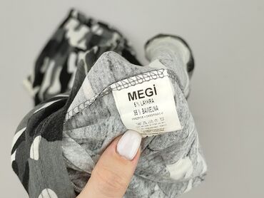 Sukienka damska w stylu casual z krótkim rękawem, w militarny wzór moro (odcienie szarości i czerni). Prosty, lekko dopasowany krój typu t‑shirt dress z okrągłym dekoltem. Dół wykończony szeroką, a...