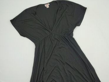 Czarna sukienka marki Mossimo, rozmiar L, z krótkim rękawem. Wykonana z połączenia rayonu i nylonu, co zapewnia komfort noszenia i trwałość. Posiada dekolt w kształcie litery V i marszczenie w tali...