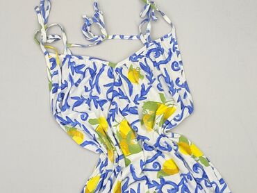 Sukienka letnia na ramiączkach z nadrukiem cytryn - Krój: lekka, prosta sukienka mini z cienkimi, regulowanymi ramiączkami wiązanymi na supełki - Dekolt: w kształcie litery V - Wzór: białe tło, ni...