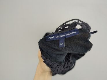 Na co dzieńCzarna sukienka damska marki Next, rozmiar UK 10 / EU 38, z okrągłym dekoltem i krótkimi rękawami. Wykonana z lnu. Ozdobiona białym koronkowym wzorem na dekolcie, sukienka łączy swobodę z elegancją, idealna na codzienne wyjścia.