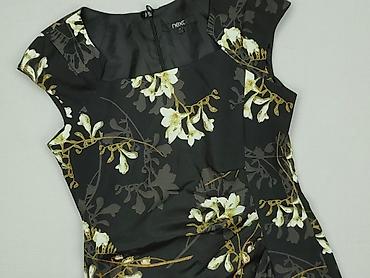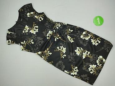 Sukienka damska ESSPRING, rozmiar M - Fason: ołówkowy, midi, z krótkim rękawem - Kolor bazowy: czarny - Wzór: duże, realistyczne kwiaty (róże, lilie, błękitne i żółte kwiaty) z przodu i częściowo ...