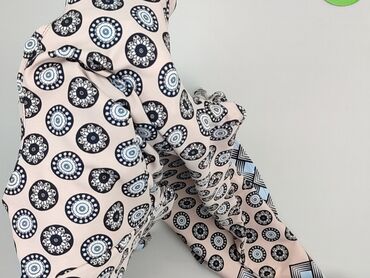 Styl: retro/geometryczny, idealny do stylizacji codziennych i wieczorowych; świetnie wygląda z gładkimi dodatkami. Kolorystyka: pudrowy róż, czarny, biały, jasny błękit.