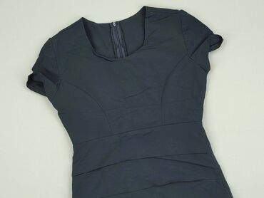 Granatowa sukienka damska z krótkim rękawem - Fason: ołówkowy, dopasowany, długość za kolano - Dekolt: łagodny, półokrągły - Rozmiar z metki: 34 (WOMEN) - Kolor: ciemnogranatowy - Wzór: elegancki ...