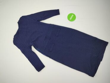 Granatowa sukienka w białe grochy – TXM, rozmiar S - Krój: dopasowany ołówkowy, odcięcie w talii podkreślające sylwetkę - Długość: midi (za kolano) - Rękaw: krótki - Dekolt: okrągły - Wzór: drobne...