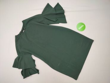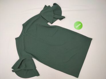Bluzka damska w kolorze oliwkowej zieleni - Fason: luźny, z zaokrąglonym dołem, raglanowe rękawy z delikatnym marszczeniem przy ramionach; krótkie, szerokie rękawy typu motylek - Dekolt: okrągły, ...