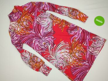 Sukienka damska oodji Collection - Fason: dopasowany, mini - Rękaw: 3/4 - Dekolt: szeroki, zaokrąglony - Wzór: duże kwiaty/ róże w odcieniach różu z zielonymi liśćmi na jasnym tle - Materiał: 96% ...