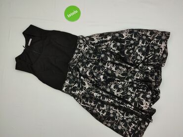 Sukienka Orsay, rozmiar L - Kolor: czarny z delikatnym, drobnym połyskiem (mikrobrokat) - Krój: dopasowana w biuście, lekko rozszerzana ku dołowi - Dekolt: głęboki w kształcie litery V - Rękaw: kr...