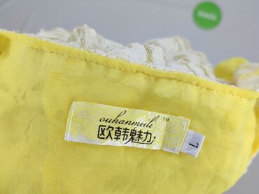 - Materiał: lekki, półprzezroczysty szyfonowy podkład w żółci + ozdobna koronka na wierzchu.