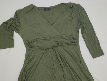 - Krój: kopertowy dekolt w serek, odcięcie pod biustem z marszczeniem, rozszerzany dół z miękkimi zakładkami