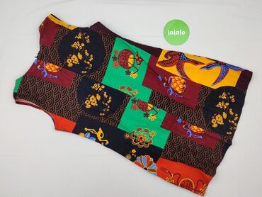 Sukienka damska bez rękawów z kolorowym, abstrakcyjnym nadrukiem - Krój: dopasowana góra, rozszerzany dół (lekko rozkloszowana), okrągły dekolt - Długość: ok. 97–98 cm (miarka na zdjęciu) - Rozmia...