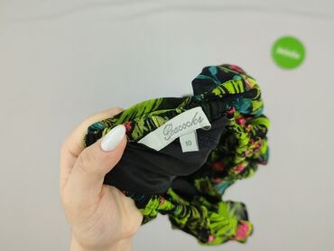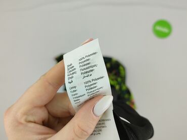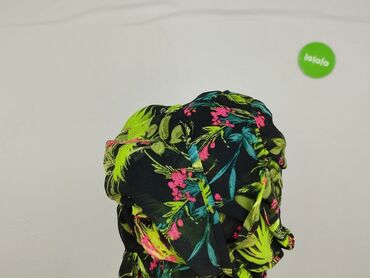 - Wzór: tropikalny print na czarnym tle – liście i kwiaty w zieleni, różu i turkusie