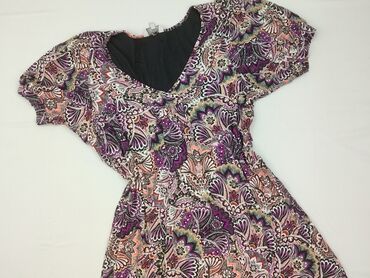 Sukienka damska Peacocks - Wzór: gęsty, kolorowy print w kwiaty (róż, lawenda, mięta, żółty, biały) na czarnym tle - Fason: dopasowana góra z odcinaną talią, spódnica lekko rozkloszowana; wycięcia...