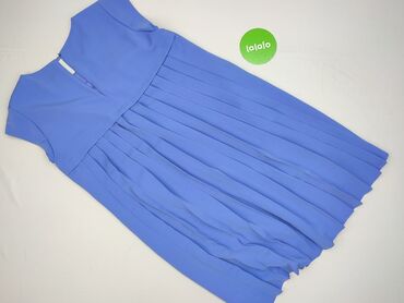 Sukienka damska, rozmiar 42, kolor kobaltowy. - Fason: prosta, lekko zwężana, długość za kolano. - Dekolt: okrągły. - Rękawy: krótkie z podwójną falbaną. - Materiał: 95% poliester, 5% elastan – el...