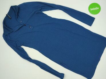 Na co dzieńNiebieska sukienka damska o prążkowanej fakturze, z długimi rękawami i kołnierzykiem typu polo. Posiada zapięcie na guziki przy dekolcie, dodając jej klasycznego charakteru. Materiał jest elastyczny, zapewniając dopasowanie do sylwetki. Idealna na co dzień.