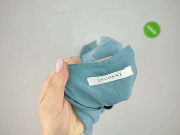 Sukienka damska Promod, krótka, z kopertowym dekoltem w kształcie litery V. Tkanina lekka i zwiewna, podszewka pod częścią spódnicową. Kolorystyka: czerń z nadrukiem grochów w odcieniach niebieskim...