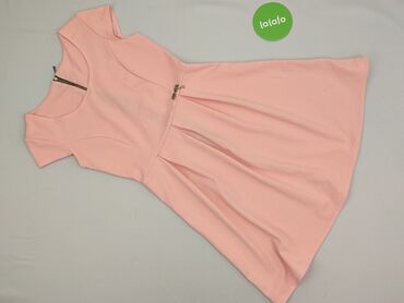 Sukienka damska bez rękawów w kolorze pudrowego różu. - Krój: dopasowana góra, rozkloszowany dół z zakładkami, talia podkreślona. - Dekolt: okrągły. - Zapięcie: suwak z tyłu. - Rozmiar z metki: XS...