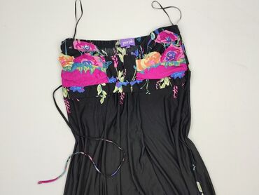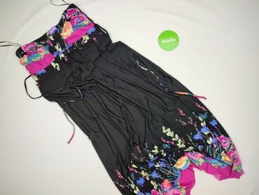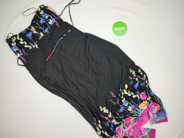 Sukienka damska maxi bez rękawów, rozmiar L - Fason: długa, rozkloszowana u dołu, z lekkimi marszczeniami i wiązaniem/zakładką w talii podkreślającą sylwetkę - Wzór: duży, roślinny print w odcieni...