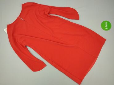 Sukienka QUIOSQUE, rozmiar 40 - Model bez rękawów, z wysoką stójką/kołnierzem kominowym w intensywnym koralowo-czerwonym kolorze - Prosty, lekko dopasowany krój do kolan - Przód w blokach koloryst...