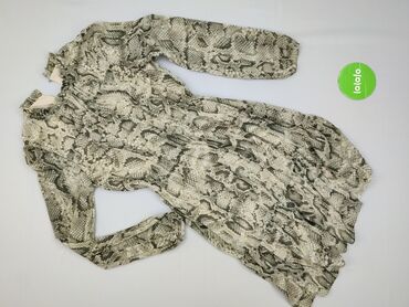 Sukienka RESERVED – Made in Europe - Rozmiar: EU 36 (UK 8) - Kolor bazowy: ecru/śmietankowa biel - Wzór: duży, botaniczny nadruk w odcieniach zieleni, żółci i różu (kwiaty i liście) - Fason: dopaso...