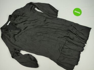Sukienka marki Reserved, rozmiar S. - Kolor: czarny - Fason: prosta góra, dół zakończony szeroką, plisowaną falbaną - Rękaw: 3/4 - Dekolt: z przodu okrągły, z tyłu w kształcie litery V z małym meta...