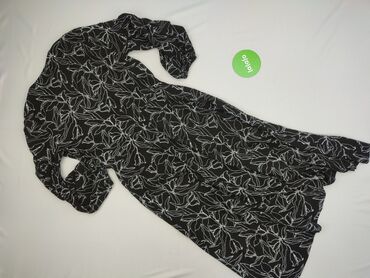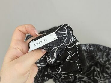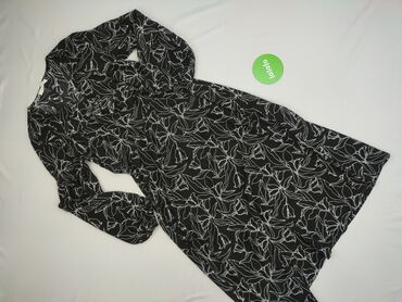 Sukienka damska RESERVED, rozmiar L - Wzór: gęsty kwiatowy print w odcieniach bieli na czarnym tle - Fason: lekko rozkloszowana, zwiewna; długość za kolano (midi); rękawy długie z delikatnym ściąga...