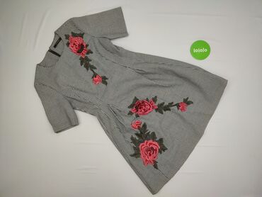 Subtelna krata w połączeniu z wyrazistymi kwiatowymi aplikacjami tworzy efektowną, a zarazem kobiecą stylizację. Marka: RESERVED. Rozmiar 38. Skład: 64% poliester, 34% wiskoza, 2% elastan. Zamek na plecach. Rękaw do łokcia, rozkloszowany dół.