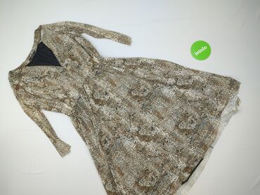 Sukienka RESERVED Eco Aware - Model: mini z długim rękawem - Wzór: beżowo‑czarny, inspirowany zwierzęcym printem (nieregularne kropki/plamki) - Dekolt: V z listwą zapinaną na guziki z przodu - Tal...