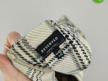 Sukienka damska RESERVED - Model: bez rękawów, z niewielkim dekoltem w kształcie V - Wzór: klasyczna kratka/piesek (czarno‑biała z delikatnym bordowym akcentem) - Fason: dopasowana góra, lekko roz...Sukienka damska Reserved, rozmiar EU 40 (UK 12).