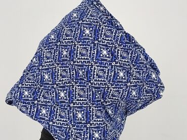 - Kolor i wzór: granatowo-biały, geometryczny nadruk w romby/kwadraty.